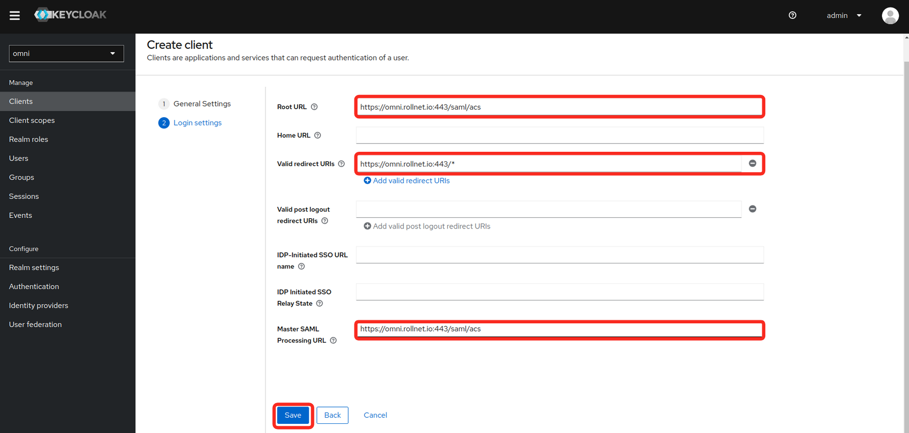 - Fill in the Login settings as shown in the example below. Replace the hostname in the example with your own Omni hostname or IP.