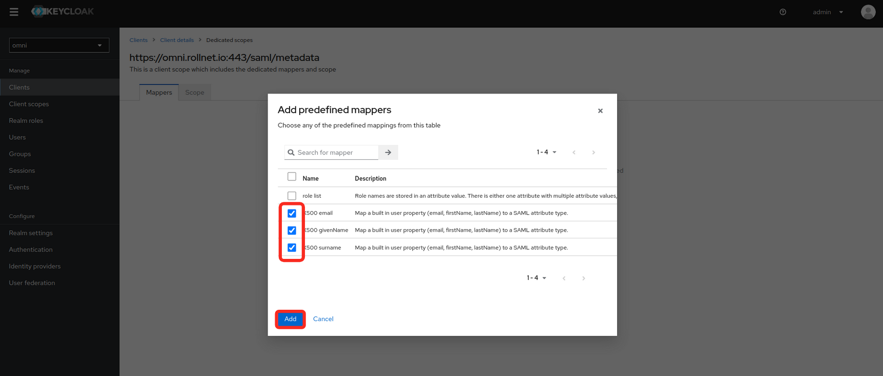 - The following mappers need to be added because they will be used by Omni will use these attributes for assigning permissions.