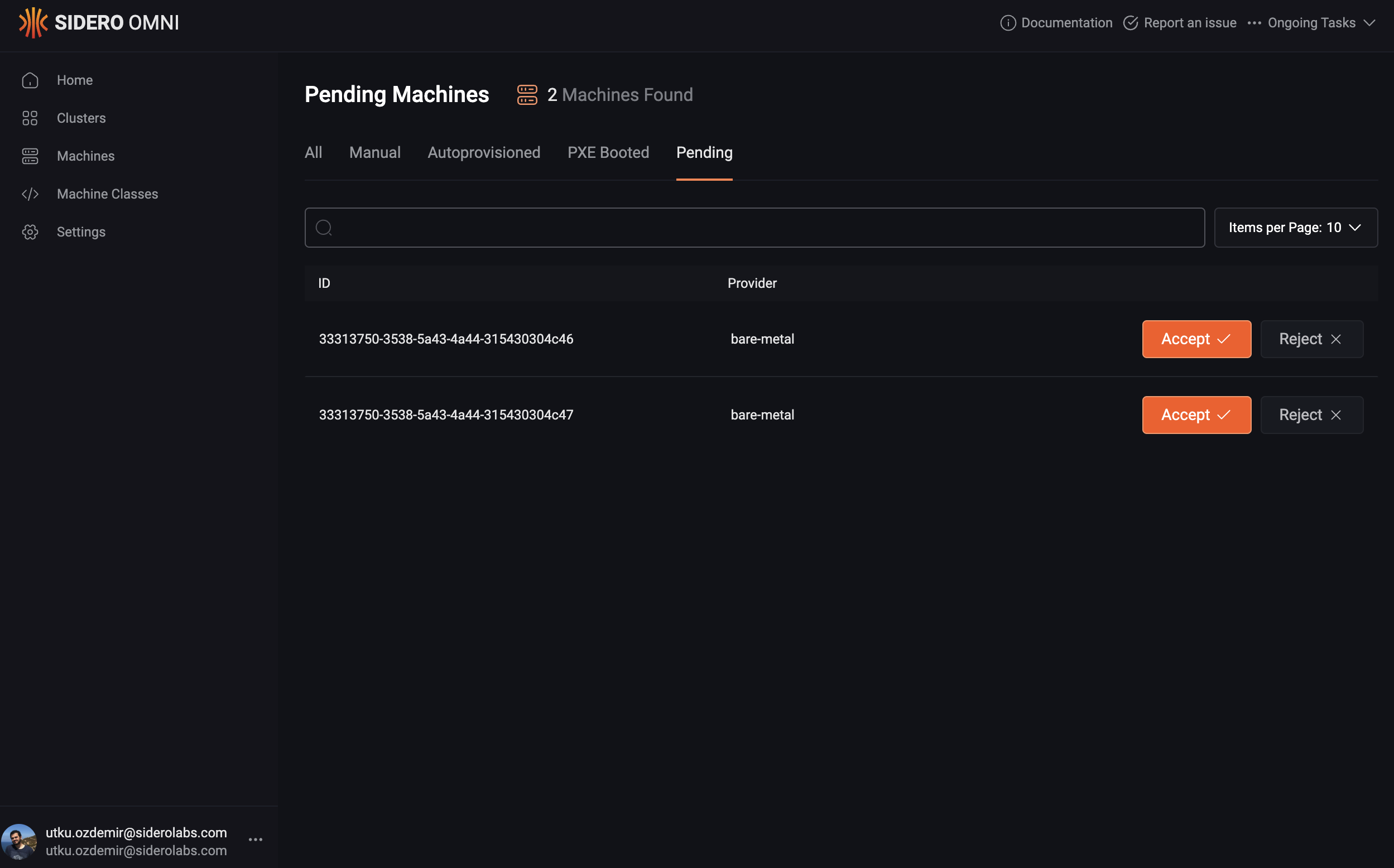 As the final step, we need to accept these machines in Omni.- From Omni Web UI