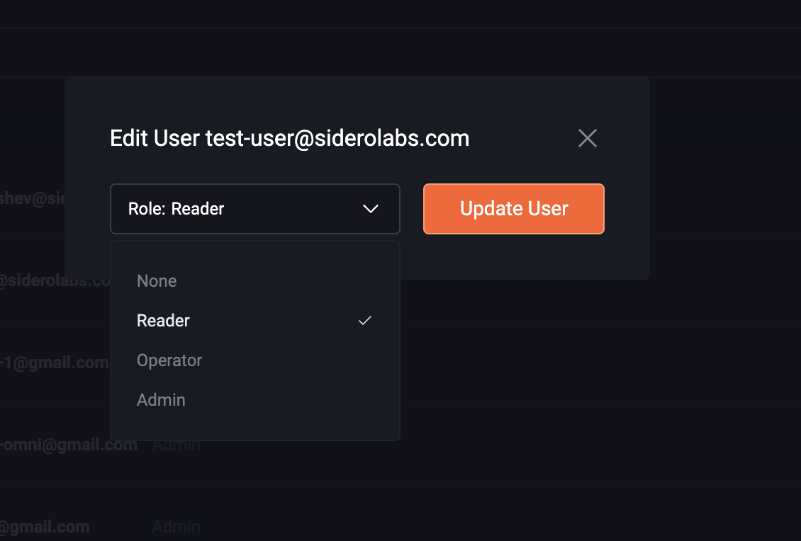 Reader, Operator or Admin as appropriate: